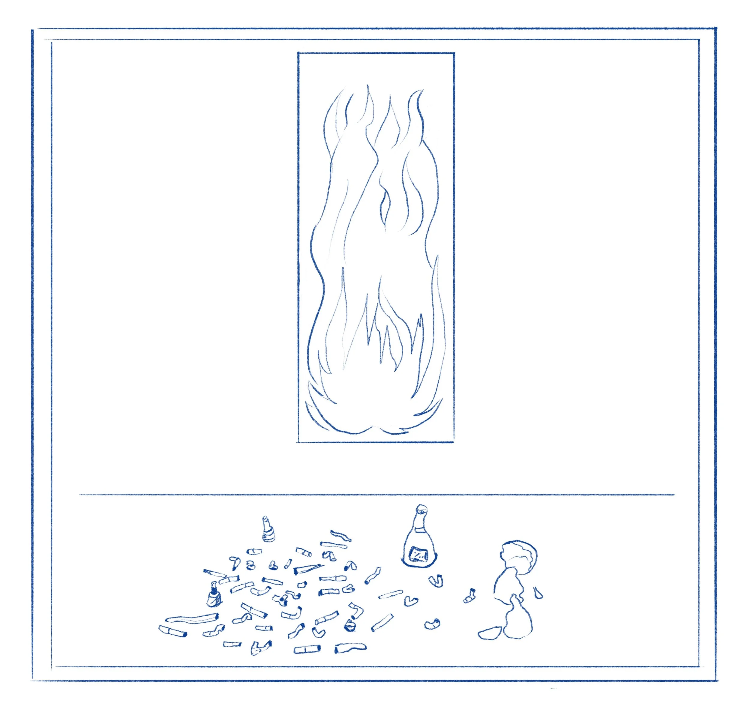 Vi mødes ved et bål af cigaretter i et hav af alkohol og fortæller hinanden vores inderste hemmeligheder, viser vores dybeste sår. Kaster alt vi holder på ud af os og brænder det hele ned. Fortæller hinanden hemmeligheder. Binder bånd, brænder bånd. Alt skal ud alt skal op. Alt skal ruskes, alt skal renses.